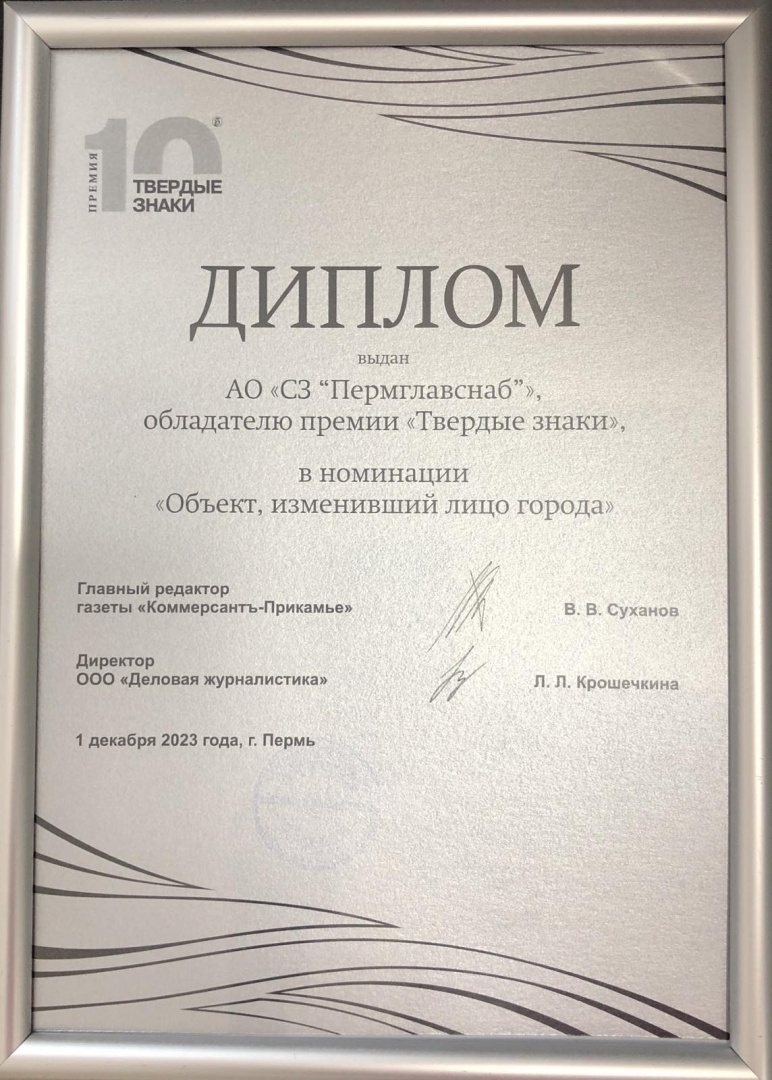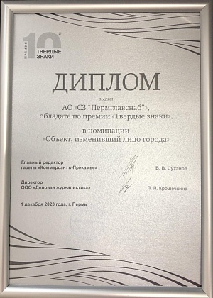 Диплом в номинации "Объект, изменивший лицо города" 2023 (Сибирская, 35)