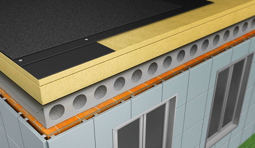 Такая разновидность крыш широко применима как в промышленном, так и в частном строительстве. Основное отличие плоских крыш от скатных заключается в использовании рулонных наплавляемых кровельных материалов. Устройство плоской крыши подразумевает применение материалов, которые могут образовать сплошной ковер. К ним можно отнести полимерные, битумные и битумно-полимерные материалы, а также мастики. Для того чтобы плоская кровля не теряла своей функции при температурных перепадах и механических деформациях, кровельный ковер должен отличаться высокой эластичностью. Основанием для него могут служить несущие плиты, стяжки, а также поверхность теплоизоляции. Все слои, уложенные друг на друга, представляют собой так называемый пирог плоской кровли.
